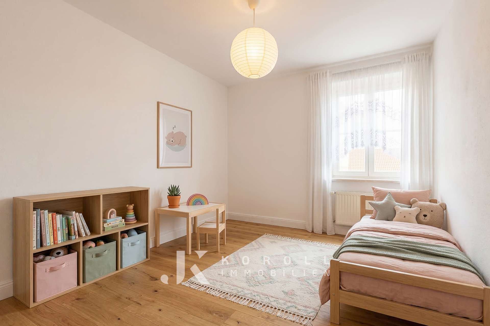 Das Hauptschlafzimmer beeindruckt durch seine überdurchschnittliche Größe , während das zweite Zimmer flexibel als Kinderzimmer, Büro oder Gästezimmer nutzbar ist.