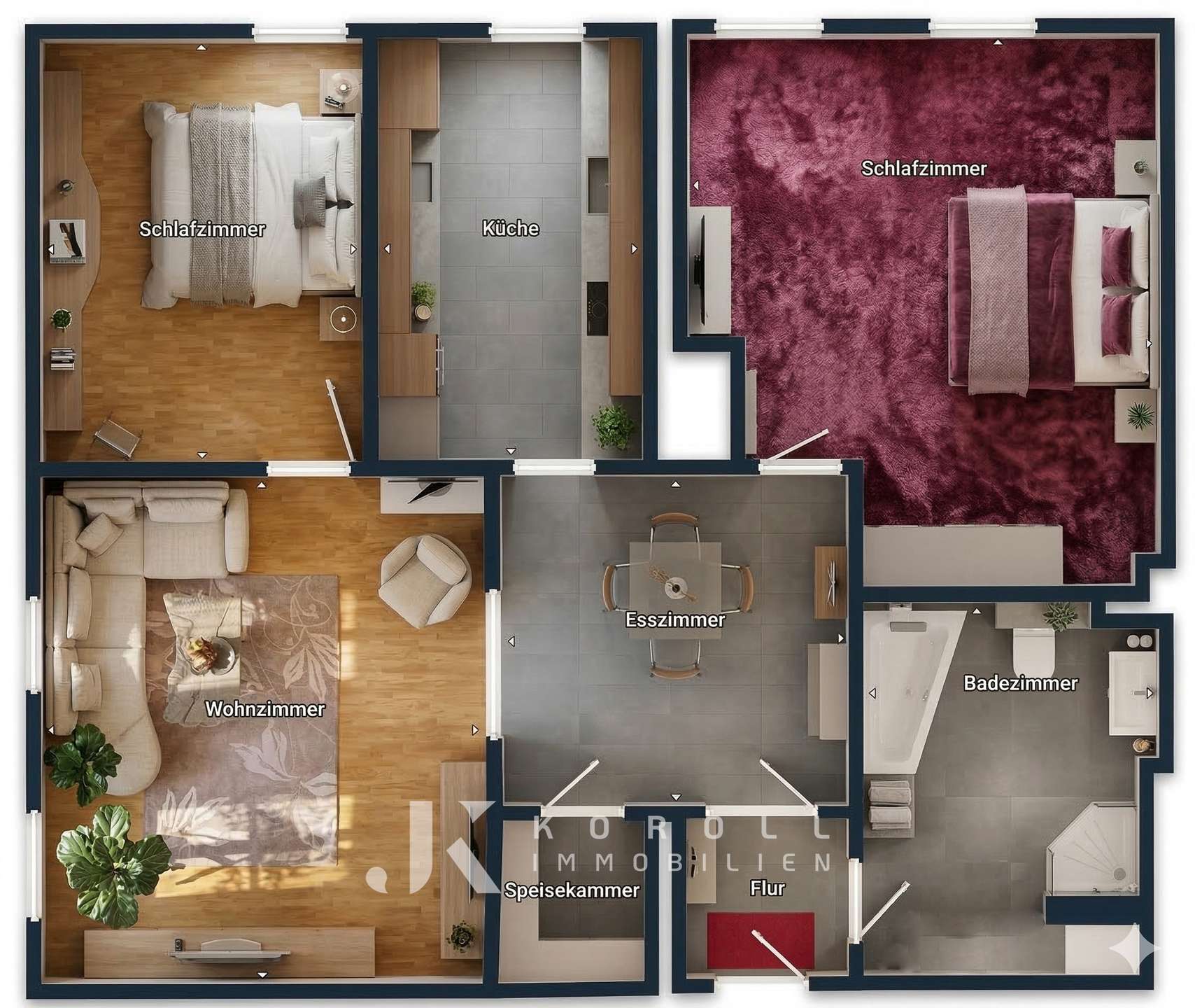 Wichtiger Hinweis zu den Grundrissen: Wir haben die Grundrisse für Sie grafisch aufbereitet, um Ihnen eine bessere Vorstellung der Raumaufteilung und Möblierungsmöglichkeiten zu geben. Bitte beachten Sie, dass es sich hierbei um Illustrationen handelt, die nicht maßstabsgetreu sind. Für die genaue Maßhaltigkeit und die Übereinstimmung mit den tatsächlichen baulichen Gegebenheiten übernehmen wir keine Gewähr. Verbindlich sind ausschließlich die vor Ort genommenen Maße.